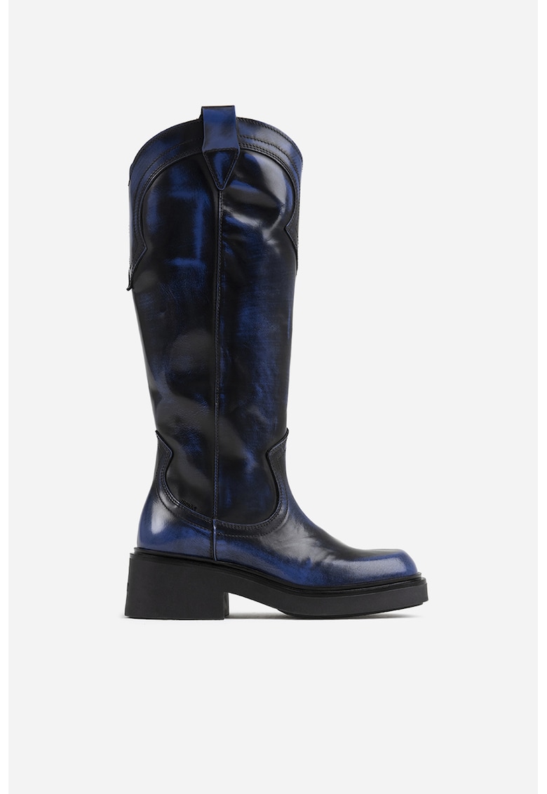 - bleumarin Material: piele naturala Imprimeu: cu model Stil: casual Varf: patrat Tip toc: masiv Inaltime: 38 cm Culoare elemente metalice: negru Sistem inchidere: fermoar Compozitie Partea superioara: piele naturala Material interior: piele Material talpa: alte materiale Dimensiuni Inaltime toc: 6 cm