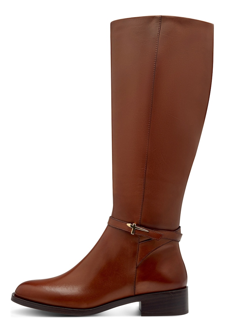 - caramel Material: piele naturala Stil: elegant Varf: rotund Tip toc: masiv Inaltime: 37.5 cm Culoare elemente metalice: auriu Sistem inchidere: fermoar Compozitie Partea superioara: piele Material interior: alte materiale