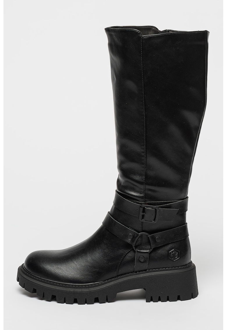 Caracteristici Tip: cu talpa joasa Culoare: negru Material: piele ecologica Imprimeu: uni Stil: casual Tip talpa: plata Inaltime: 35 cm Culoare elemente metalice: negru Sistem inchidere: fermoar Compozitie Partea superioara: alte materiale Material interior: alte materiale