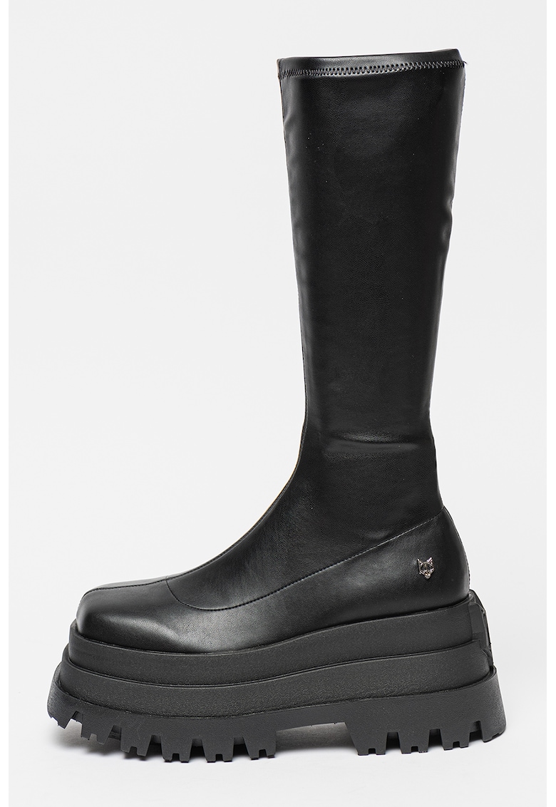 Caracteristici Tip: cu platforma Culoare: negru Material: piele ecologica Imprimeu: uni Stil: casual Varf: rotund Tip talpa: wedge Inaltime: 23 cm Sistem inchidere: fara inchidere Compozitie Partea superioara: alte materiale Material interior: alte materiale Material talpa: alte materiale Dimensiuni Platforma spate: 9 cm