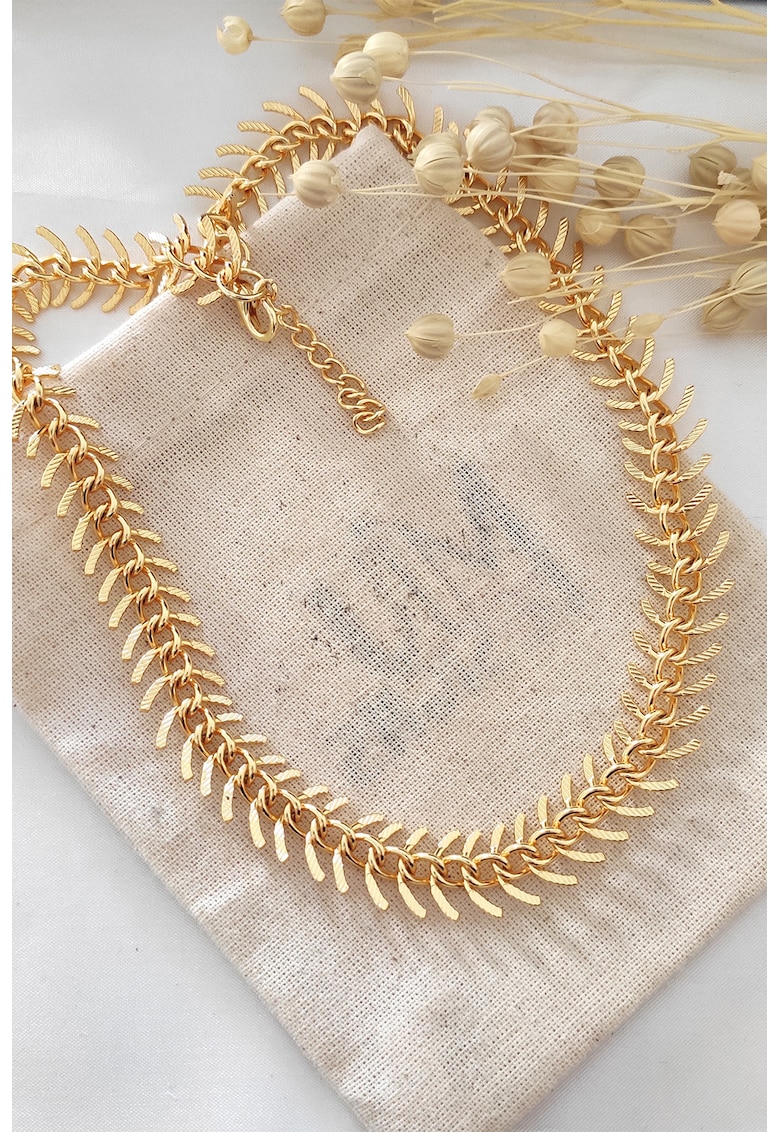Caracteristici Tip produs: colier Material: alama Culoare: auriu Ambalaj: produsul este livrat in ambalaj personalizat. Compozitie Compozitie: alama Pietre: fara pietre Placaj: pvd Dimensiuni Lungime: 42 cm Informatii suplimentare: a se evita lovirea