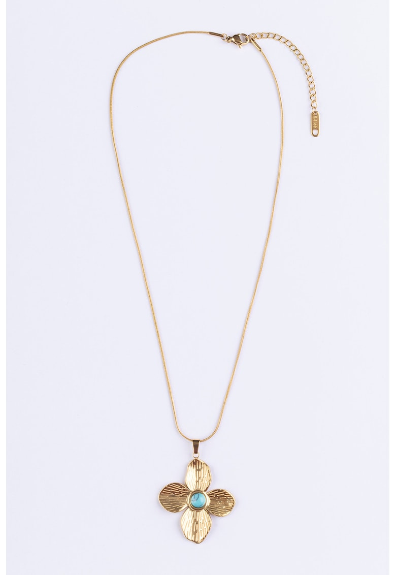 - suprafete abrazive. Sistem inchidere: lobster Ambalaj: produsul se livreaza in ambalaj personalizat. Gramaj: 8 g Compozitie Compozitie: otel inoxidabil Pietre: turcoaz Placaj: aur de 18k Dimensiuni Lungime pandantiv: 3.5 cm