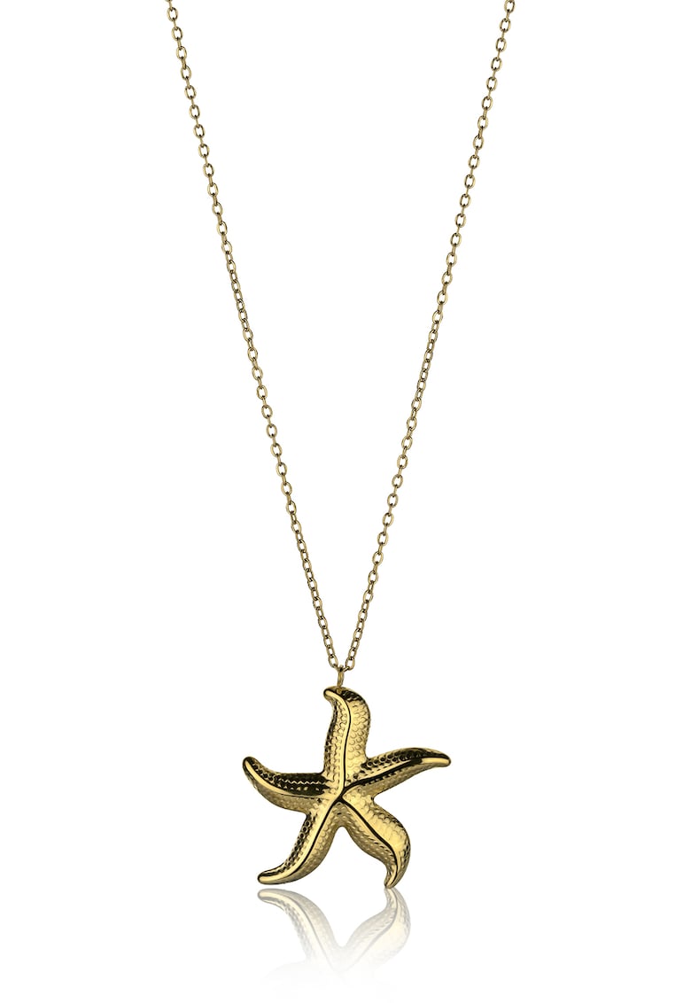Caracteristici Tip produs: colier Material: inox Culoare: auriu Detalii: pandantiv in forma de stea de mare