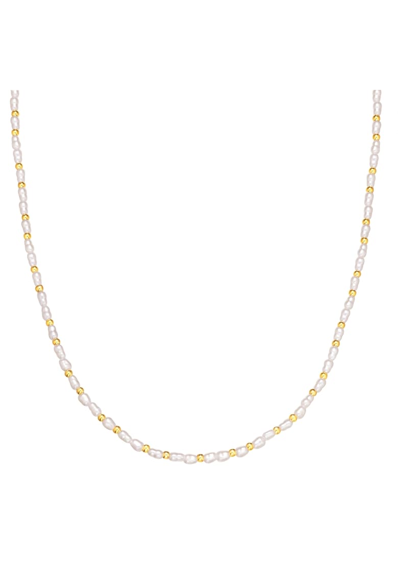 Caracteristici Tip produs: colier Material: inox Culoare: alb Sistem inchidere: lobster Ambalaj: produsul se livreaza in ambalaj personalizat. Compozitie Compozitie: otel inoxidabil Pietre: perle sintetice Placaj: aur galben de 14k Dimensiuni Lungime: 45 cm Latime: 3.6 mm Informatii suplimentare: a se evita socurile mecanice si termice