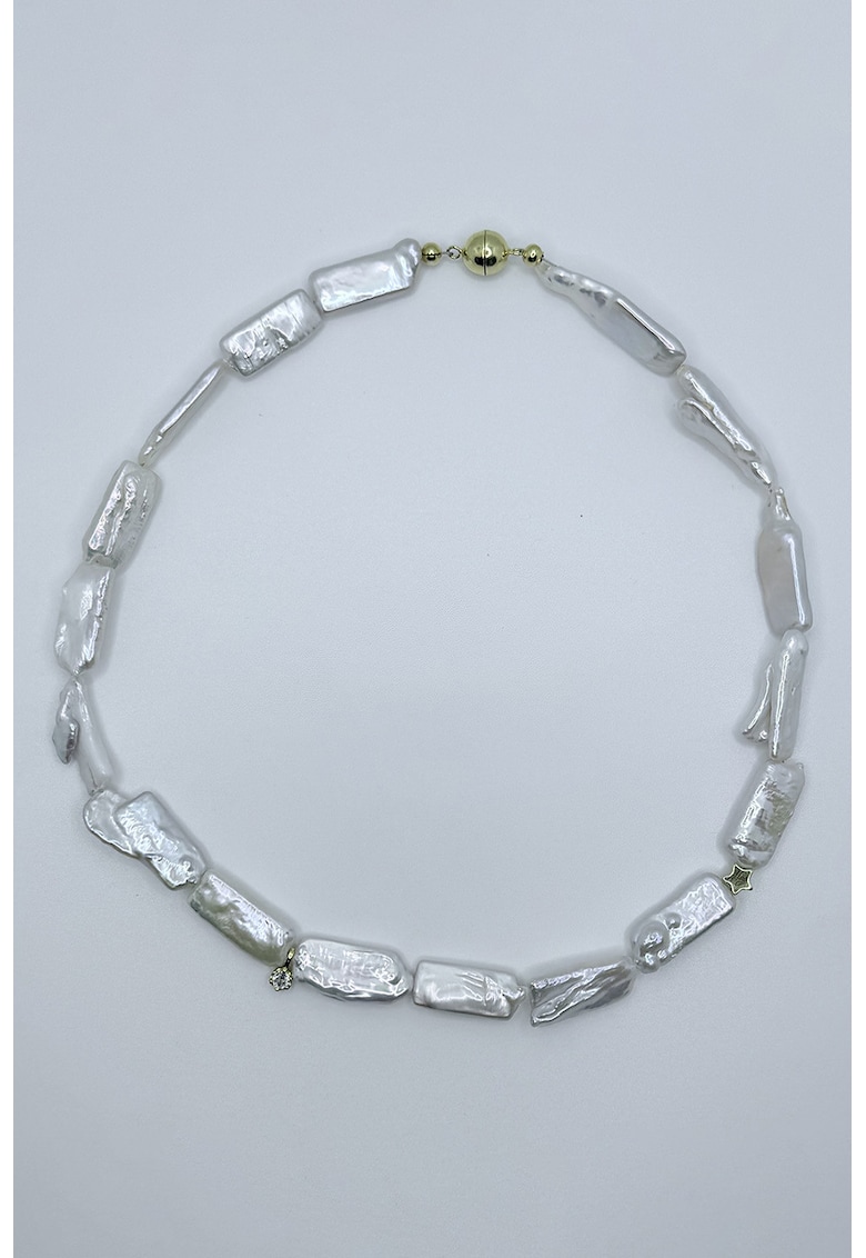 Caracteristici Tip produs: colier Material: argint Culoare: alb optic Detalii: perle de cultura Ambalaj: produsul este livrat in ambalaj personalizat. Gramaj: 3.38 g Compozitie Compozitie: argint veritabil 925 Pietre: perle Placaj: aur de 24k Dimensiuni Lungime: 43 cm Informatii suplimentare: a se evita lovirea