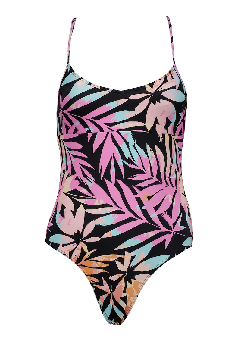 - albastru Imprimeu: tropical Forma cupa: plina Material: sintetic Design Tip sutien: fara burete Sustinere metalica: fara sarma Tip slipi: brazilian Compozitie Exterior: 78% poliamida