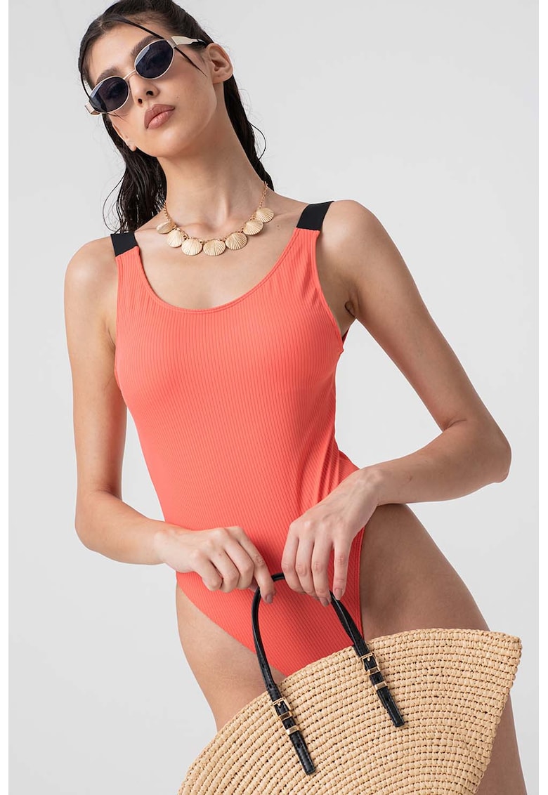 Detalii generale Tip produs: costum intreg Culoare: coral Imprimeu: uni Forma cupa: plina Material: elastan
