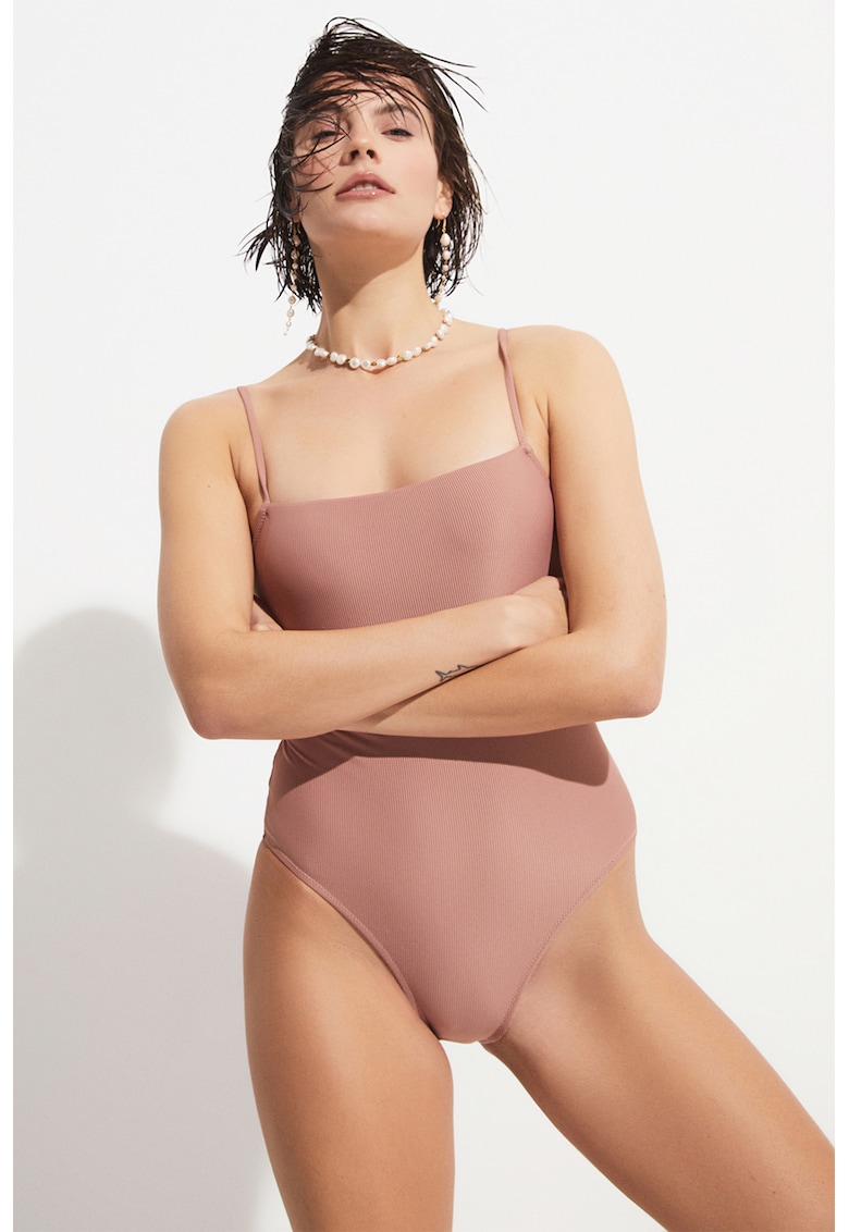 Detalii generale Tip produs: costum intreg Culoare: roz prafuit Imprimeu: uni Forma cupa: plina Material: poliamida Barete: ajustabile