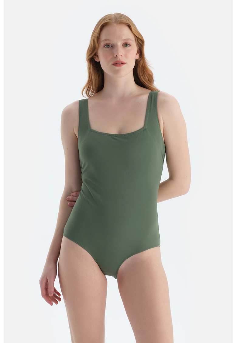Detalii generale Tip produs: costum intreg Culoare: verde feriga Imprimeu: uni Forma cupa: jumatate Material: sintetic Sistem inchidere: fara inchidere Design Tip sutien: cu burete Sustinere metalica: fara sarma Stil decolteu: patrat Stil spate: u Tip slipi: clasic Compozitie Exterior: 80% poliamida