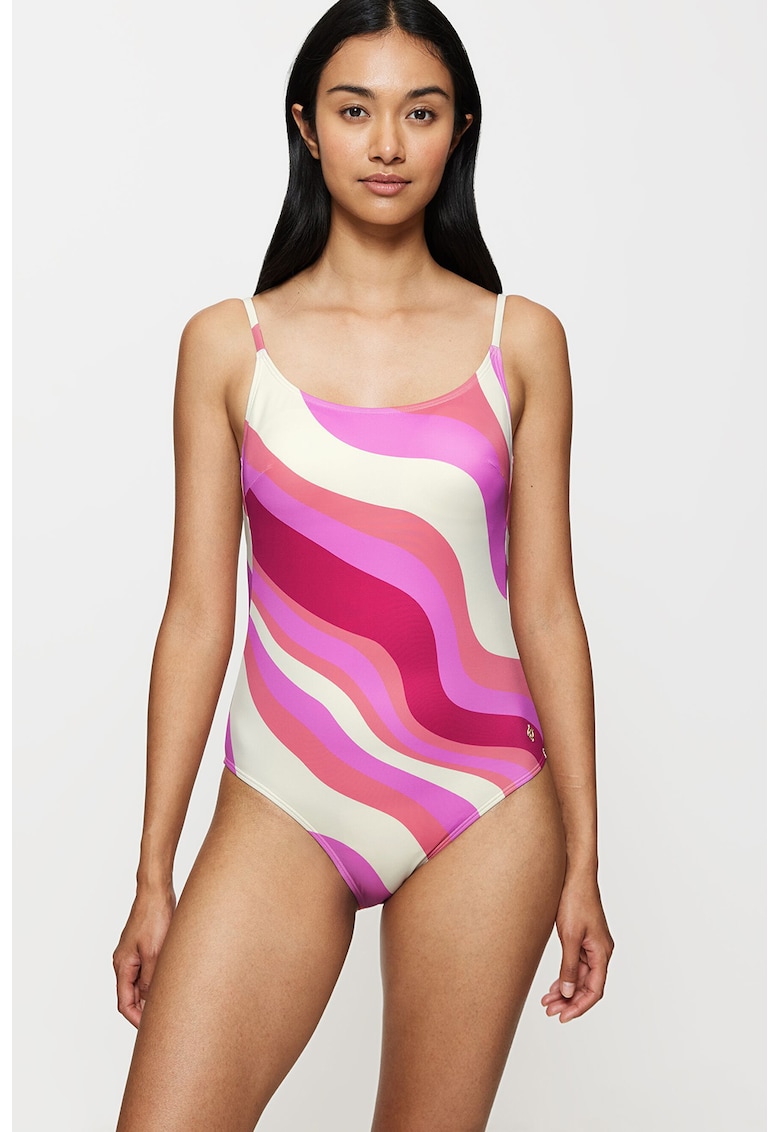 - roz Imprimeu: geometric Material: sintetic Barete: ajustabila Design Tip sutien: burete subtire Sustinere metalica: fara sarma Stil decolteu: rotund Tip slipi: clasic Compozitie Exterior: 80% poliamida