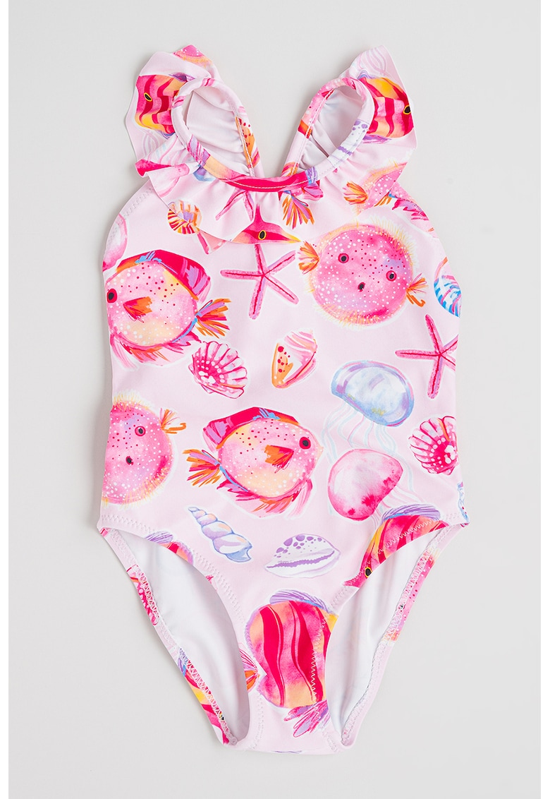 - alb murdar Tip costum de baie: intreg Material: sintetic Imprimeu: nautic Sistem inchidere: fara inchidere Stil spate: x Detalii: volane Compozitie Exterior: 85% poliester