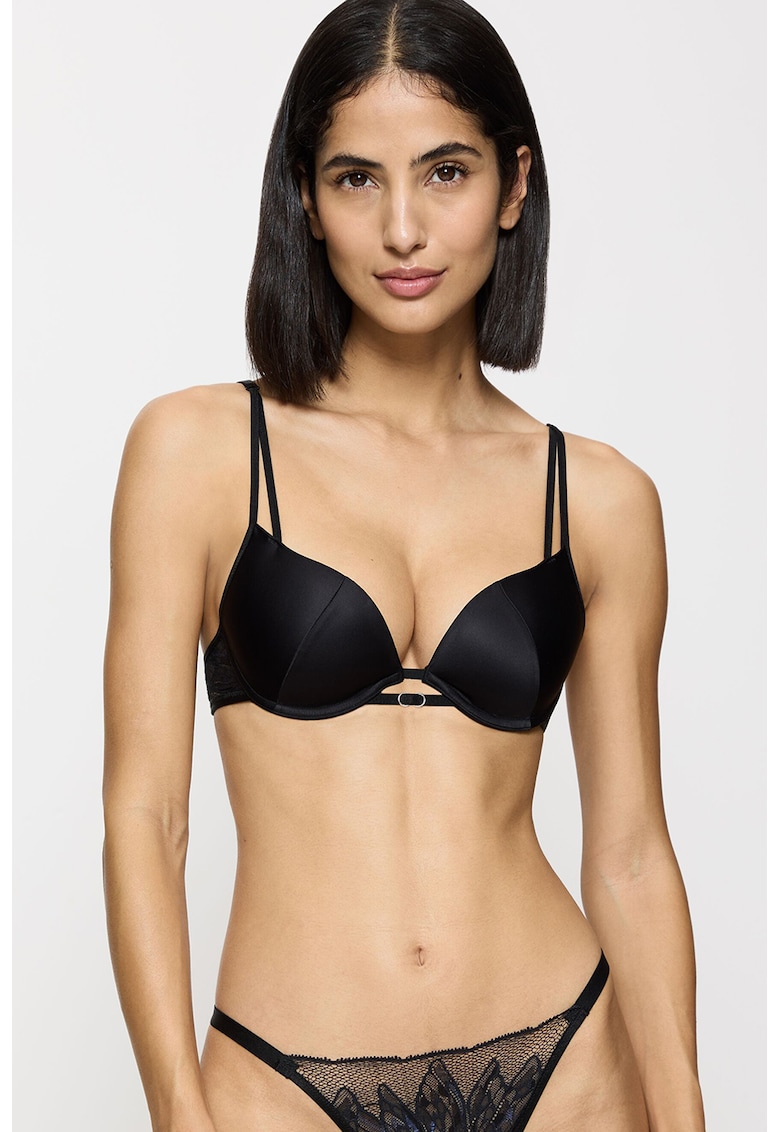 - dantela Imprimeu: uni Barete: ajustabile Forma cupa: push up Burete cupa: cu burete Sustinere metalica: cu sarma Sistem inchidere: clasp Compozitie Exterior: 80% poliester