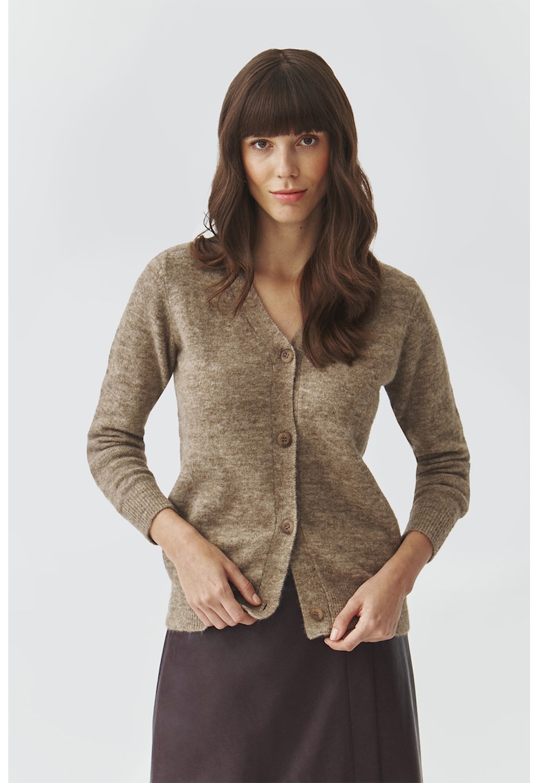 Caracteristici Tip produs: cardigan Culoare: maro melange Imprimeu: uni Material: poliester