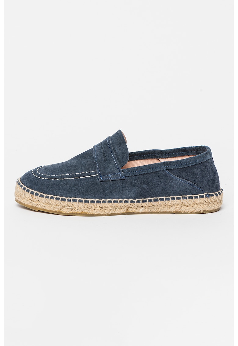 Caracteristici Tip produs: espadrile Culoare: bleumarin Material: piele intoarsa Imprimeu: uni Stil: casual Varf: rotund Tip talpa: plata Detalii: aplicatii din iuta impletite Sistem inchidere: fara inchidere Compozitie Partea superioara: piele intoarsa Material interior: sintetic Material talpa: alte materiale