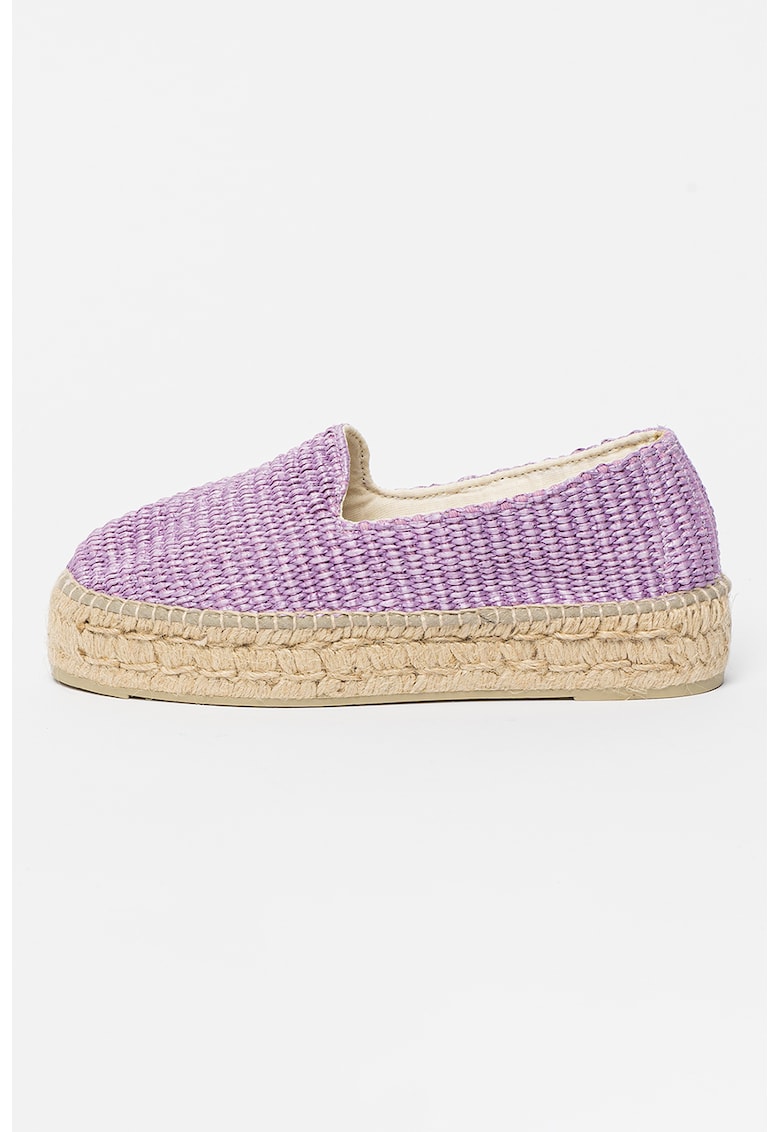 Caracteristici Tip produs: espadrile Culoare: lila Material: textil Imprimeu: uni Stil: casual Varf: rotund Tip talpa: plata Detalii: texturata