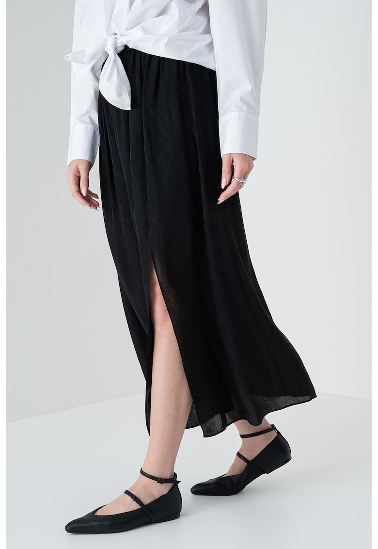 - negru stins Stil: casual Imprimeu: logo Croiala: evazat Material: viscoza Talie: inalta Lungime: midi Sistem inchidere: fara inchidere Compozitie Exterior: 100% viscoza Info model Modelul poarta un produs de marimea S/2 IT. Marimi model: 174 cm inaltime