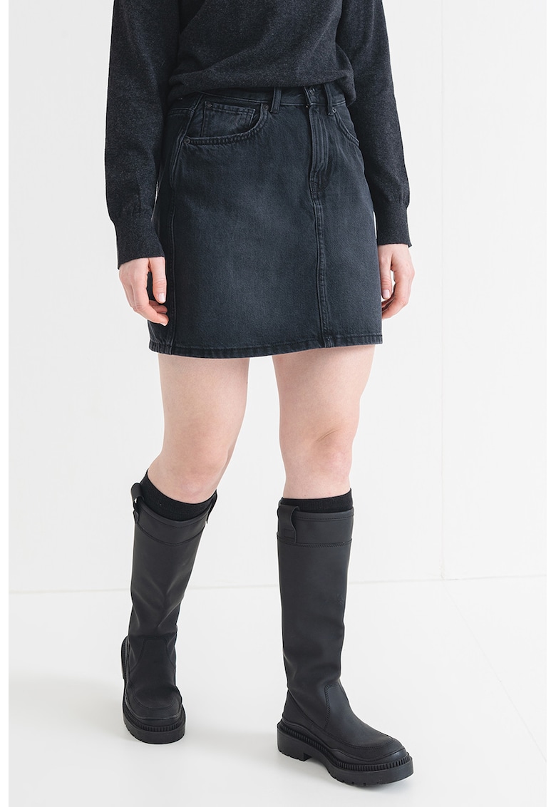 Caracteristici Culoare: negru stins Stil: casual Imprimeu: uni Croiala: in a Material: denim Talie: medie Lungime: scurta Buzunare: 5 buzunare Sistem inchidere: fermoar