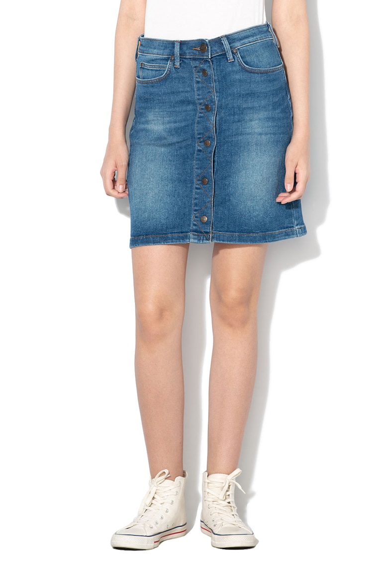 Caracteristici Culoare: albastru Stil: casual Imprimeu: uni Croiala: in a Material: denim Talie: medie Lungime: scurta Buzunare: 2 pe partea din fata