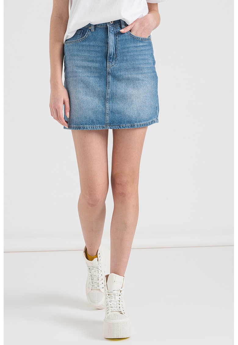 Caracteristici Culoare: albastru pastel Stil: casual Imprimeu: uni Croiala: dreapta Material: denim Talie: inalta Lungime: scurta Buzunare: 5 Sistem inchidere: fermoar Compozitie Exterior: 100% bumbac Info model Modelul poarta un produs de marimea S. Marimi model: 173 cm inaltime