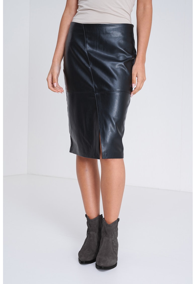 Caracteristici Culoare: negru Stil: casual Imprimeu: uni Croiala: dreapta Material: poliester Talie: medie Lungime: scurta Detalii: slit pe partea din fata Sistem inchidere: fermoar Compozitie Exterior: 100% poliester Info model Modelul poarta un produs de marimea S. Marimi model: 174 cm inaltime