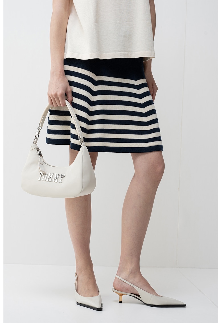 - bleumarin Stil: casual Imprimeu: dungi Croiala: evazat Material: lyocell Talie: inalta Lungime: scurta Compozitie Exterior: 90% lyocell