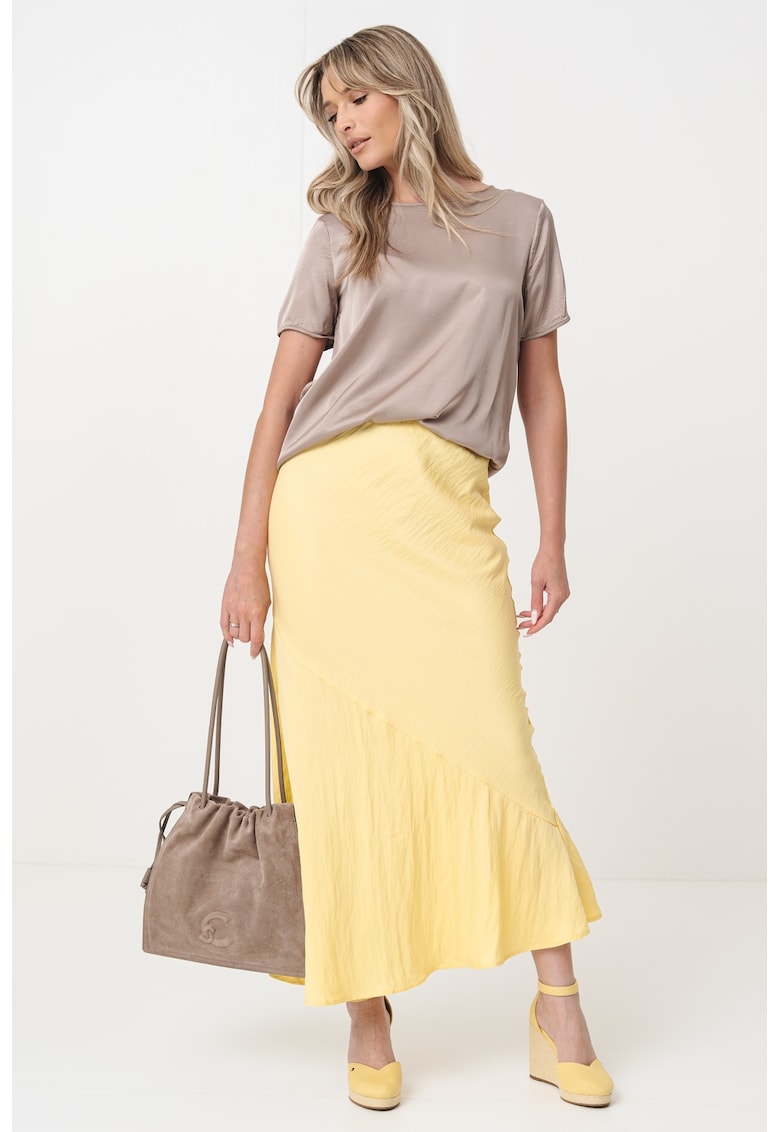 Caracteristici Culoare: galben pai Stil: casual Imprimeu: uni Croiala: pe bie Material: viscoza
