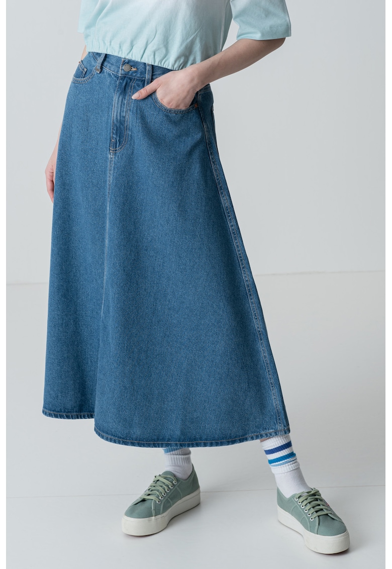 Caracteristici Culoare: albastru pastel Stil: casual Imprimeu: uni Croiala: evazat Material: bumbac