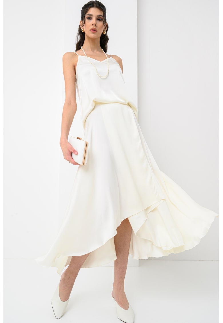 Caracteristici Culoare: alb murdar Stil: elegant Imprimeu: uni Croiala: evazat Material: sintetic Talie: inalta Lungime: lunga Compozitie Exterior: 88% acrilic