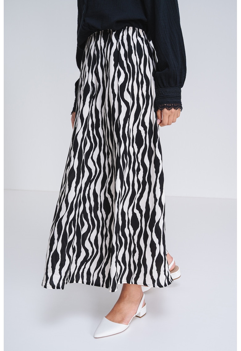 - negru Stil: elegant Imprimeu: dungi Croiala: dreapta Material: viscoza Talie: medie Lungime: lunga Sistem inchidere: fara inchidere Compozitie Exterior: 100% viscoza Info model Modelul poarta un produs de marimea S. Marimi model: 174 cm inaltime
