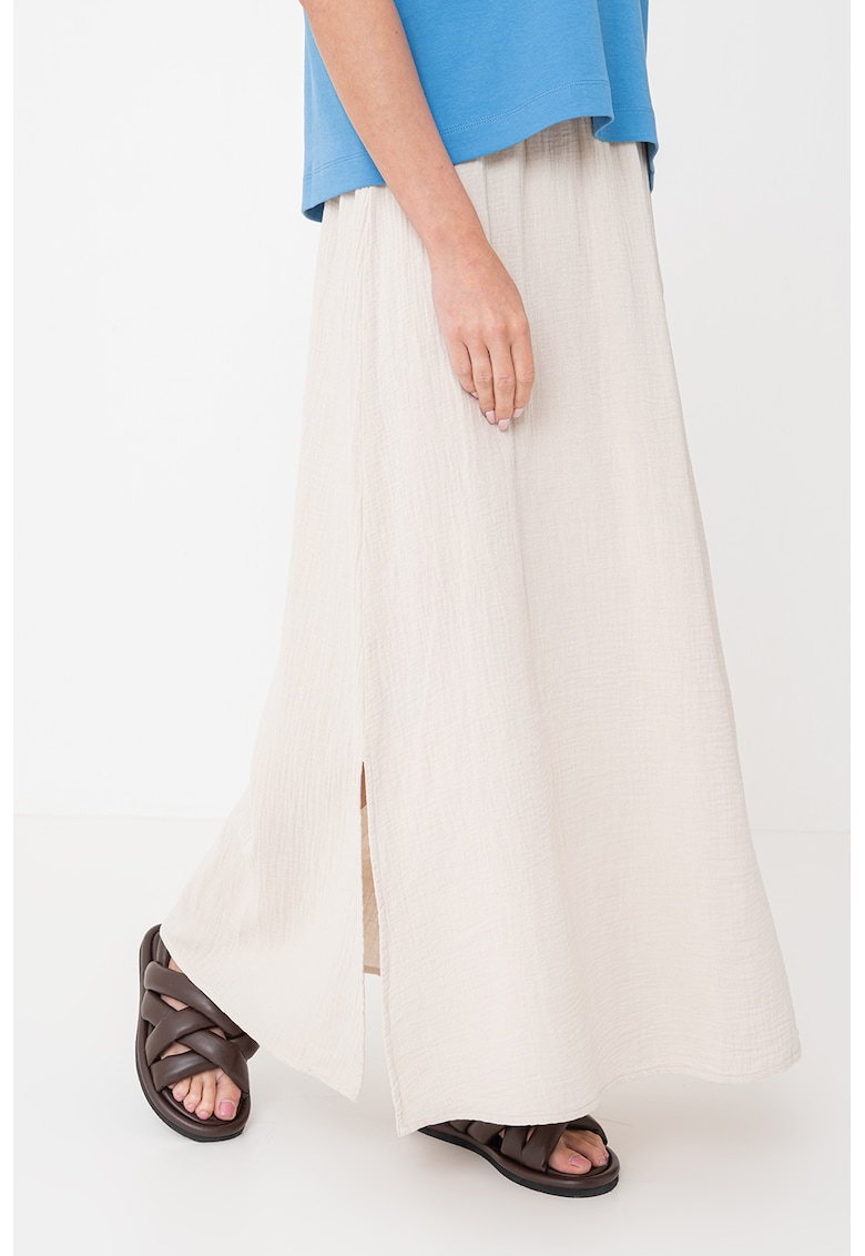 Caracteristici Culoare: gri deschis Stil: casual Imprimeu: uni Croiala: evazat Material: bumbac organic Talie: inalta Lungime: lunga Sistem inchidere: fara inchidere Compozitie Exterior: 100% bumbac organic Info model Modelul poarta un produs de marimea S. Marimi model: 174 cm inaltime