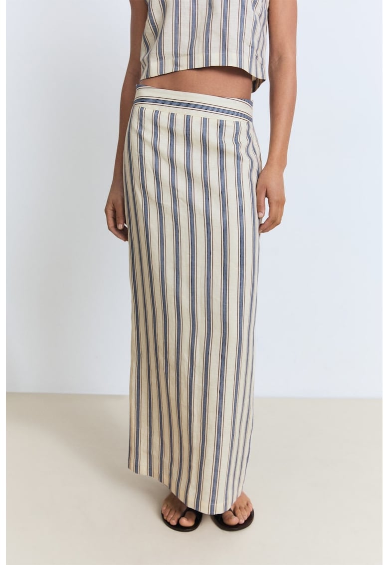 - bleumarin Stil: casual Imprimeu: stelute Croiala: dreapta Material: in Talie: medie Lungime: lunga Detalii: slit pe partea din spate