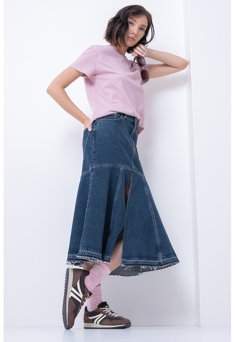 Caracteristici Culoare: albastru inchis melange Stil: casual Imprimeu: uni Croiala: evazat Material: denim Talie: inalta Lungime: midi Sistem inchidere: fermoar Compozitie Exterior: 99% bumbac