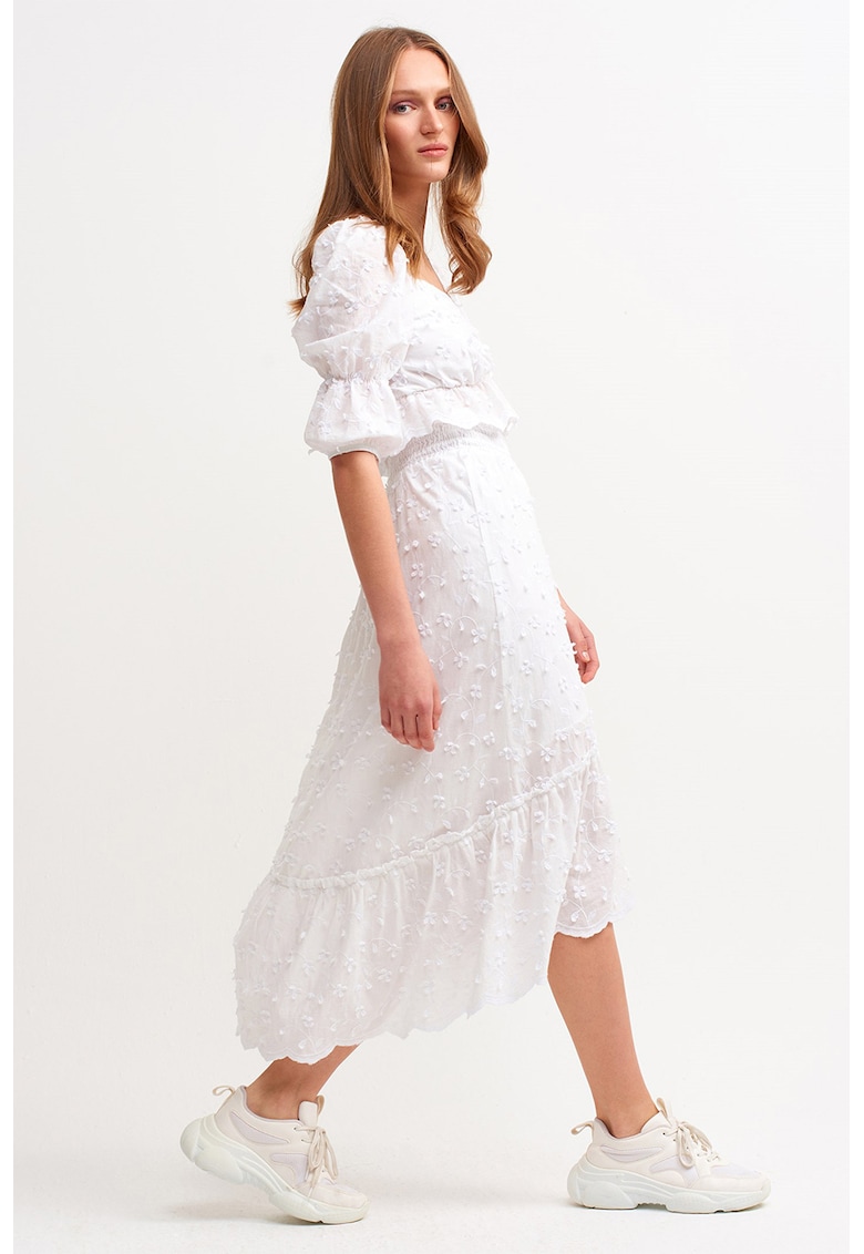 - asimetric Material: bumbac Talie: inalta Lungime: midi Detalii: talie elastica