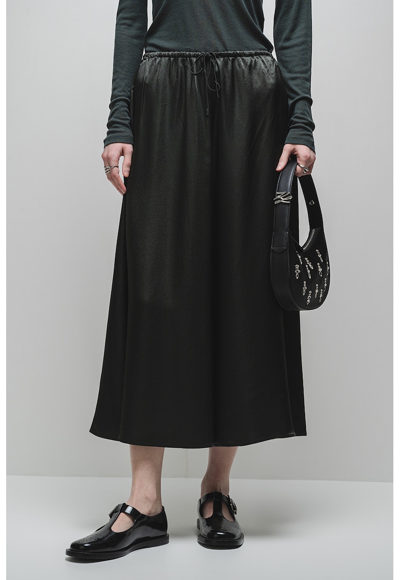 Caracteristici Culoare: verde englez Stil: casual Imprimeu: uni Croiala: evazat Material: satin Talie: medie Lungime: midi Detalii: snur pentru ajustare Sistem inchidere: fara inchidere Compozitie Exterior: 100% acetat Info model Modelul poarta un produs de marimea S. Marimi model: 177 cm inaltime