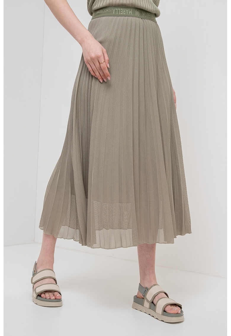 Caracteristici Culoare: verde feriga Stil: casual Imprimeu: uni Croiala: evazat Material: sintetic Talie: inalta Lungime: midi Detalii: design plisat