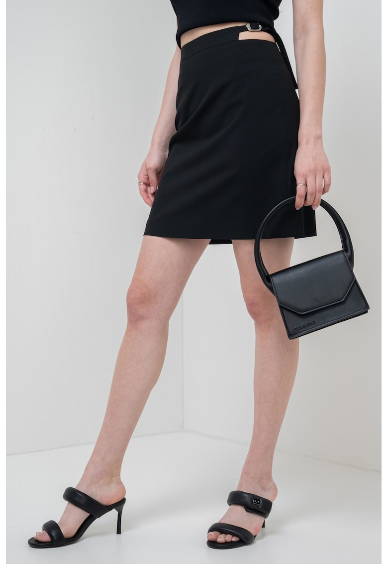 - viscoza Talie: inalta Lungime: scurta Detalii: decupaje in partile laterale Sistem inchidere: fermoar Compozitie Exterior: 74% poliester