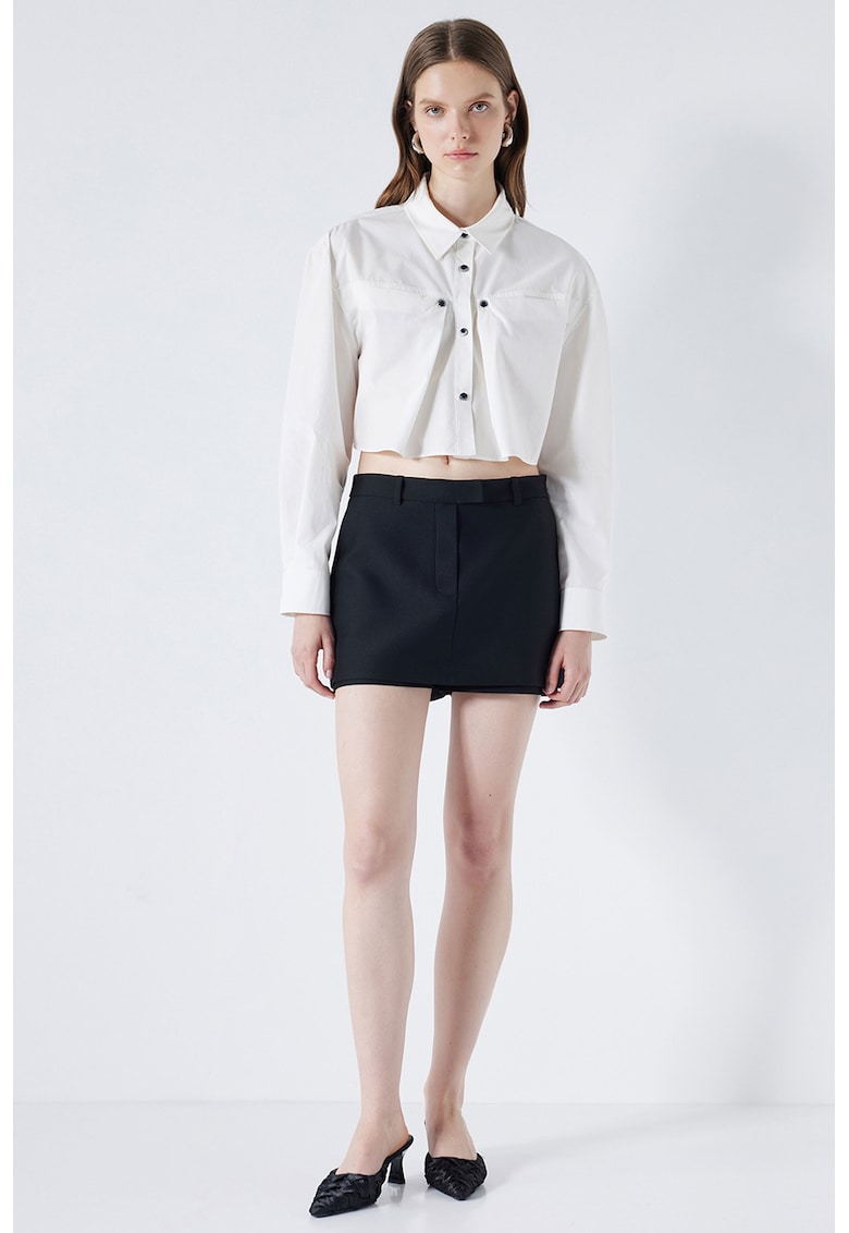 - viscoza Imprimeu: uni Croiala: regular fit Lungime: scurti Talie: joasa Buzunare: in cusaturile laterale Sistem inchidere: fermoar Compozitie Exterior: 74% poliester