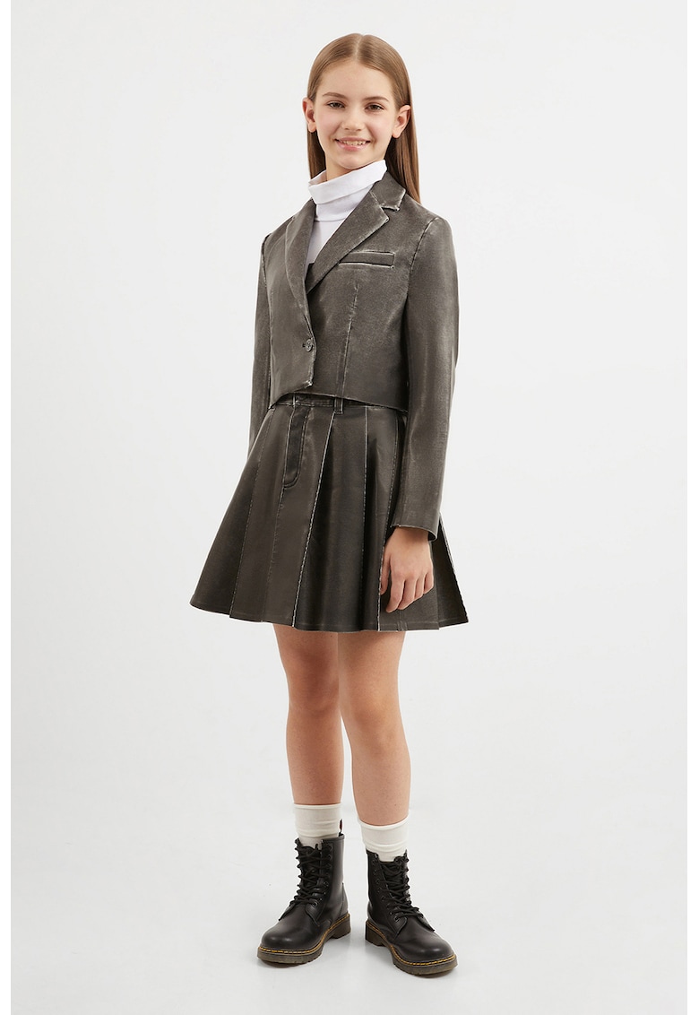 Caracteristici Culoare: gri antracit Material: sintetic Imprimeu: uni Croiala: evazat Stil: casual Lungime: scurta Sistem inchidere: nasturi Colectie: primavara