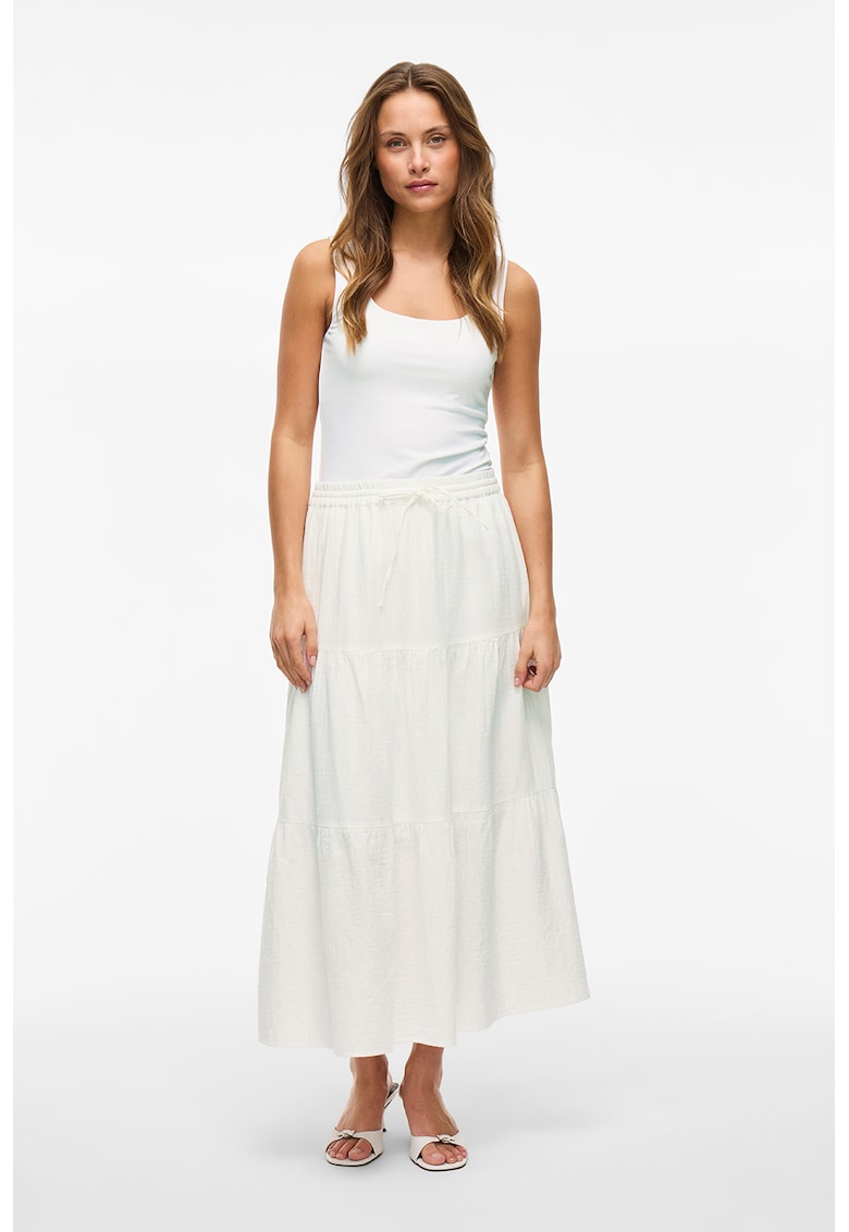 Caracteristici Culoare: alb Stil: casual Imprimeu: uni Croiala: evazat Material: bumbac organic Talie: medie Lungime: lunga Detalii: snur pentru ajustare si insertie elastica in talie