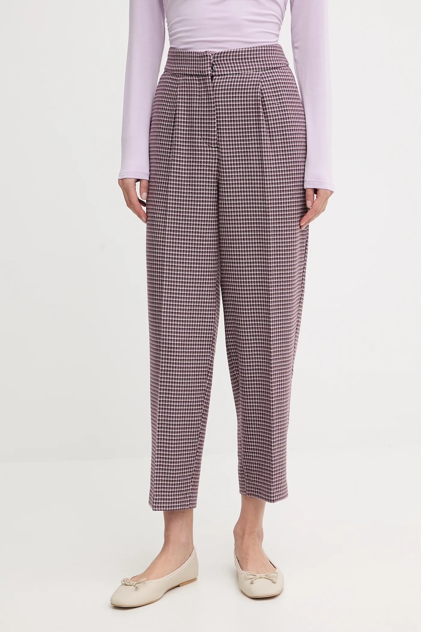 - Model cu talie ridicată și fermoar, cu nasturi și închidere cu cârlig.