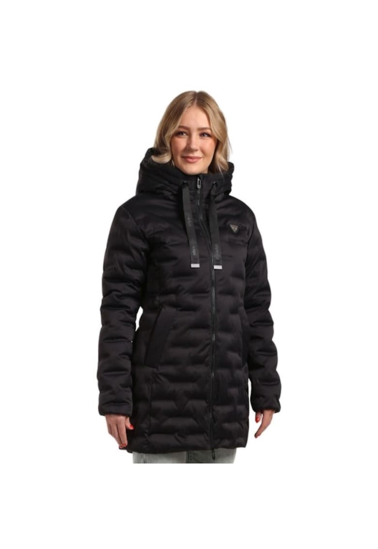 Caracteristici Tip produs: jacheta Culoare: negru Material: poliester Croiala: regular fit Gluga: cu gluga Lungime maneca: maneca lunga Buzunare: 2 principale Detalii: tip palton Tehnologie: siberium 10 000 2l