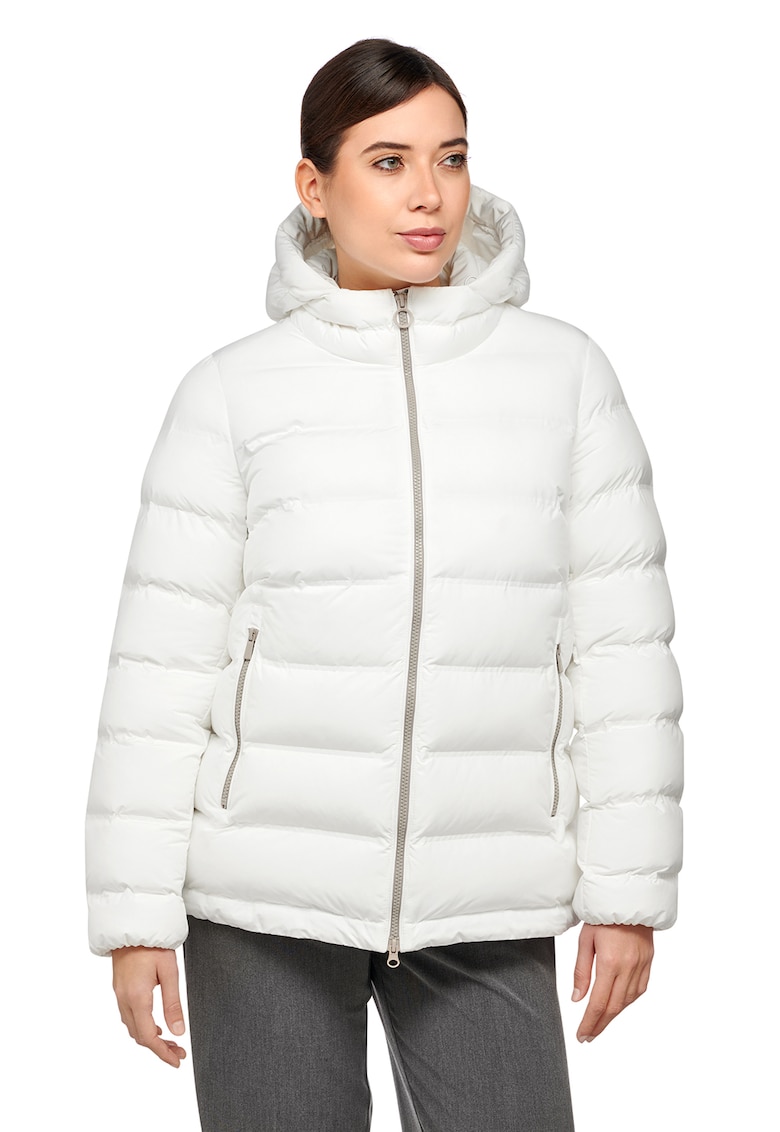 Caracteristici Tip produs: geaca Culoare: alb Imprimeu: uni Material: sintetic Croiala: regular fit Guler: inalt Gluga: cu gluga Lungime maneca: maneca lunga Buzunare: 2 laterale