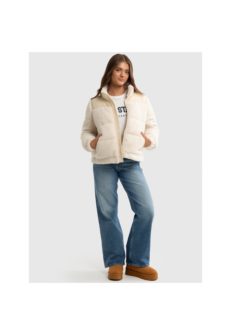 Caracteristici Tip produs: geaca Culoare: crem Imprimeu: uni Croiala: regular fit Material: sintetic Lungime: scurta Guler: inalt Buzunare: 2 laterale Sistem inchidere: fermoar Colectie: primavara