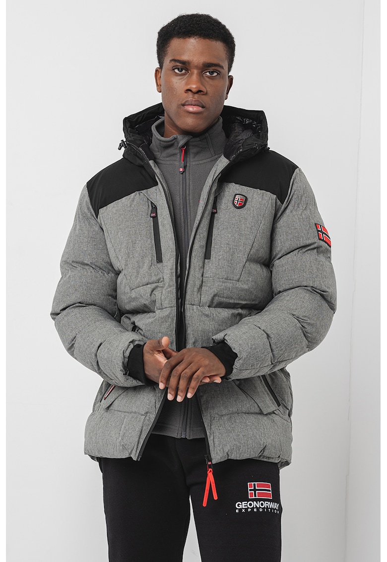 - gri inchis melange Material: sintetic Croiala: regular fit Imprimeu: uni Gluga: cu gluga Lungime maneca: maneca lunga Buzunare: cu fermoar Detalii: aspect matlasat