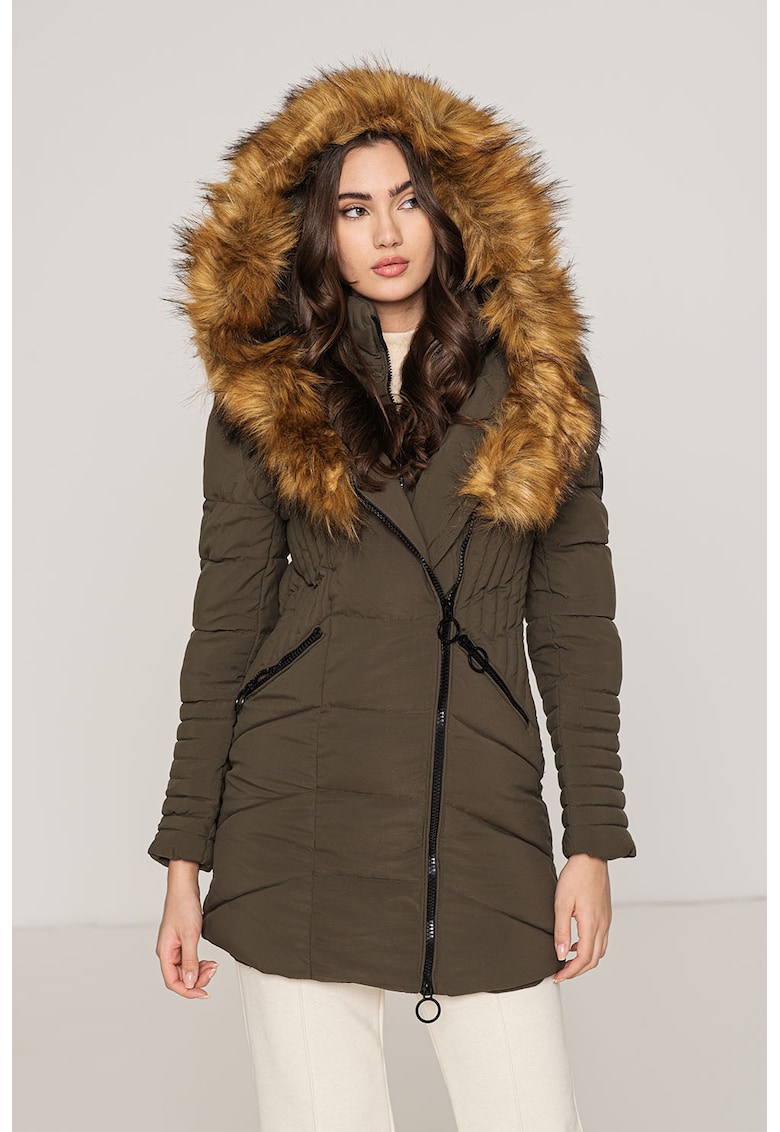 Caracteristici Tip produs: geaca Culoare: kaki Imprimeu: uni Material: sintetic Croiala: regular fit Gluga: cu gluga Lungime maneca: maneca lunga Buzunare: 2 frontale cu fermoar Detalii: garnitura de blana sintetica Tehnologie: impermeabila Sistem inchidere: fermoar Compozitie Exterior: 100% poliester Material garnituri: 80% poliacrilic