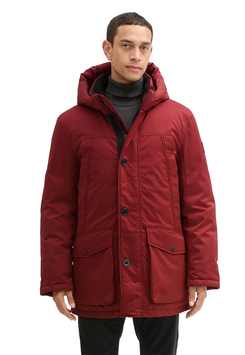 Caracteristici Tip produs: geaca Culoare: caramiziu Material: sintetic Croiala: regular fit Imprimeu: uni Gluga: cu gluga Guler: mediu Lungime maneca: maneca lunga Buzunare: clape Detalii: gluga detasabila Sistem inchidere: fermoar