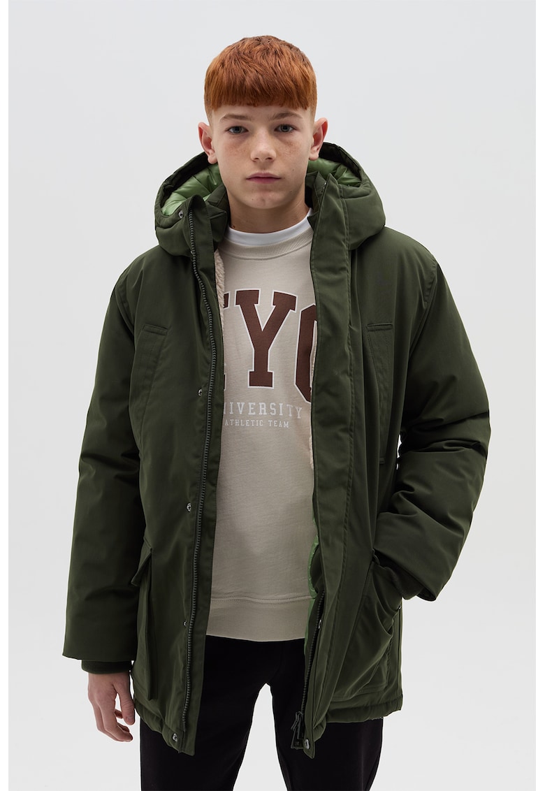 Caracteristici Tip produs: geaca Culoare: verde inchis Imprimeu: uni Croiala: regular fit Material: poliester Buzunare: 2 cu clapa Lungime maneca: maneca lunga Sistem inchidere: fermoar