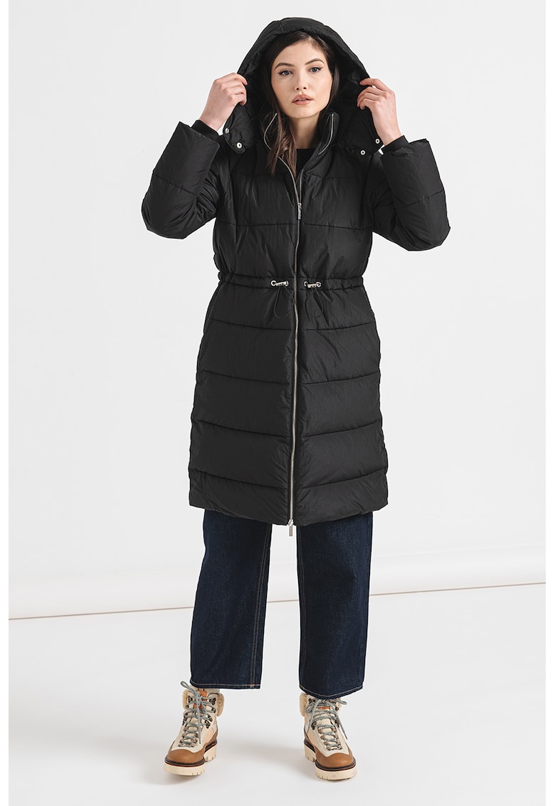 Caracteristici Tip produs: geaca Culoare: negru Imprimeu: uni Material: poliester Croiala: regular fit Gluga: cu gluga Lungime maneca: maneca lunga Buzunare: 2 Detalii: talie ajustabila Sistem inchidere: fermoar Compozitie Exterior: 100% poliester Captuseala: 100% poliamida Info model Modelul poarta un produs de marimea S. Marimi model: 176 cm inaltime