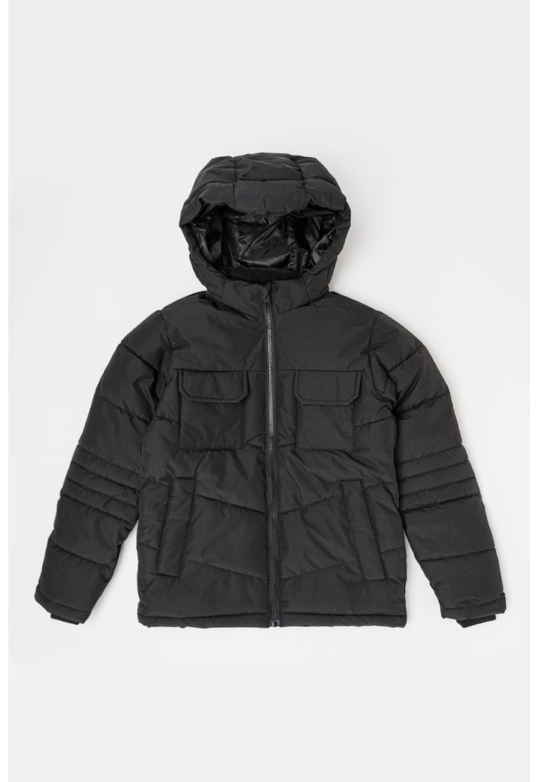 Caracteristici Tip produs: geaca Culoare: negru Imprimeu: uni Croiala: regular fit Material: sintetic Buzunare: 4 Lungime maneca: maneca lunga Detalii: aspect matlasat Sistem inchidere: fermoar Colectie: primavara