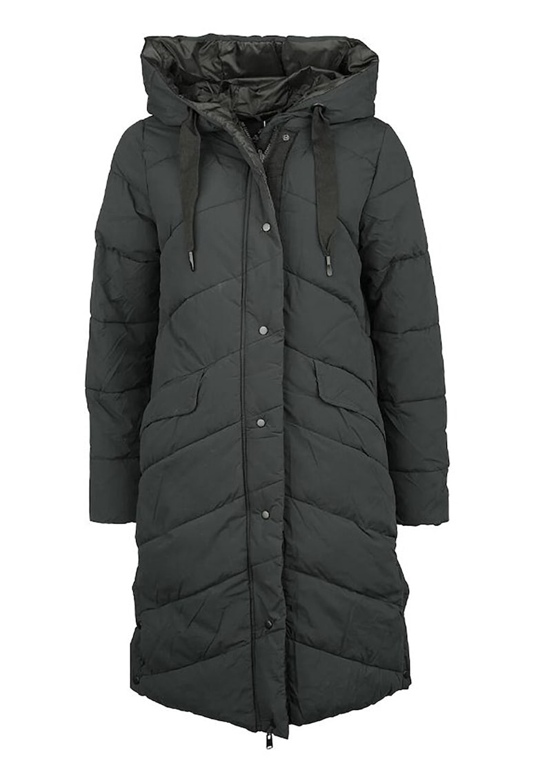 Caracteristici Tip produs: geaca Culoare: negru Imprimeu: uni Material: poliester Gluga: cu gluga Lungime maneca: maneca lunga Buzunare: 2 Detalii: aspect matlasat